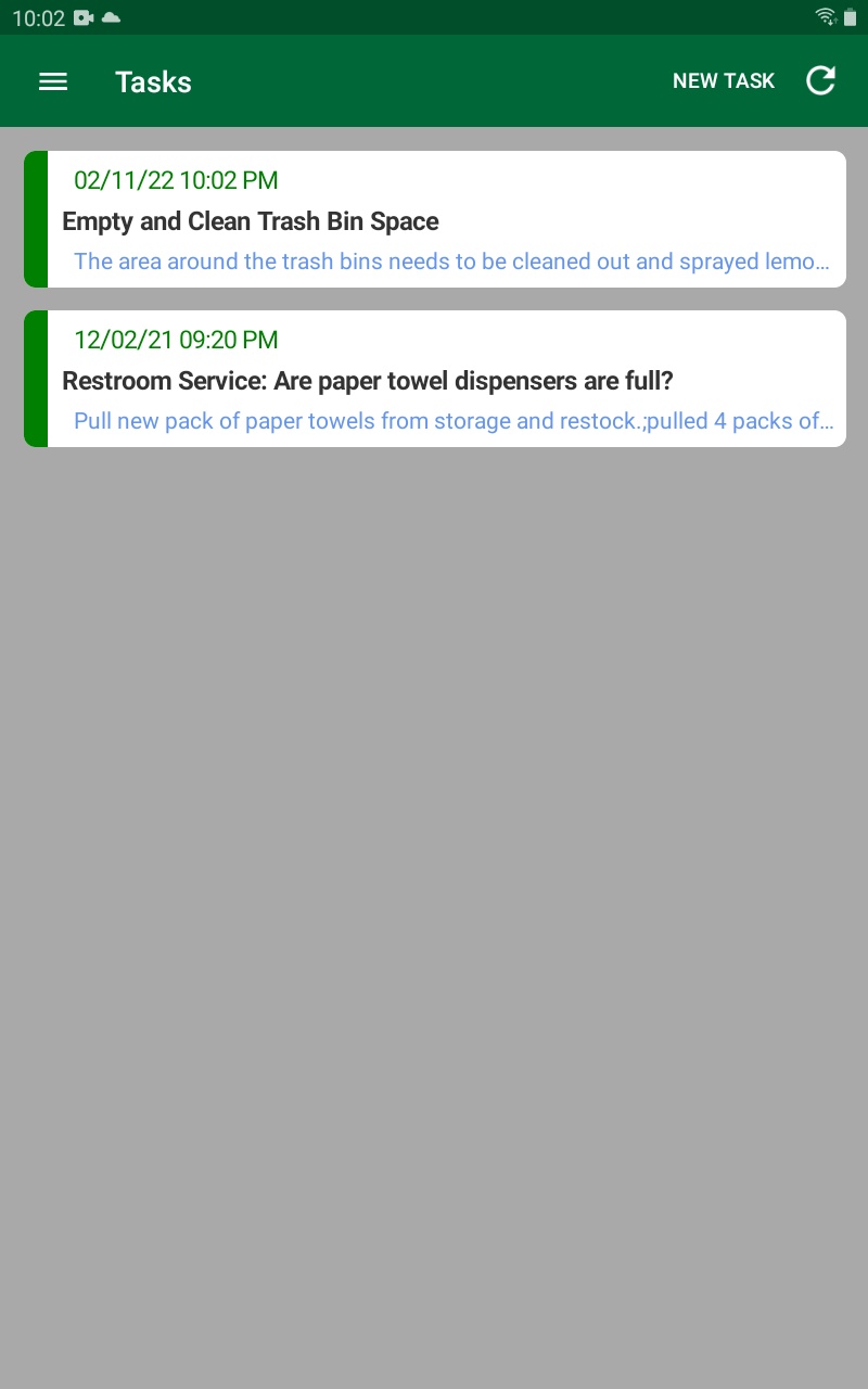 - In the Mobile App, tap Tasks on the app menu. The Tasks screen appears with a list of open tasks: